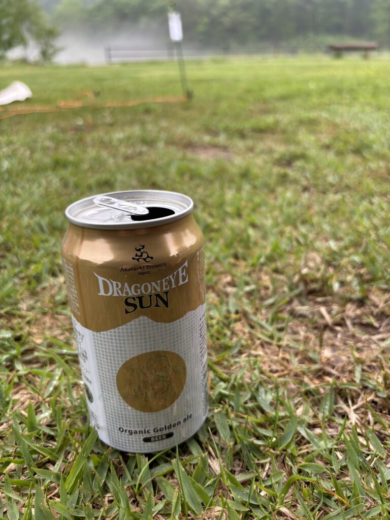 キャンプではその地域のモノを味わいたいタイプ。まずは八幡平ドラゴンアイビールと岩手銀河高原ビールを疲れた身体に流し込む…。