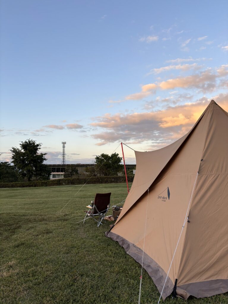 本社社屋。来たら撮りますよね~。何度か来ていますがこんないい天気に当たったのは初めて。10月なのにまだまだ暑い💦チャチャっと設営済ませてのんびりキャンプを楽しみましょう♪