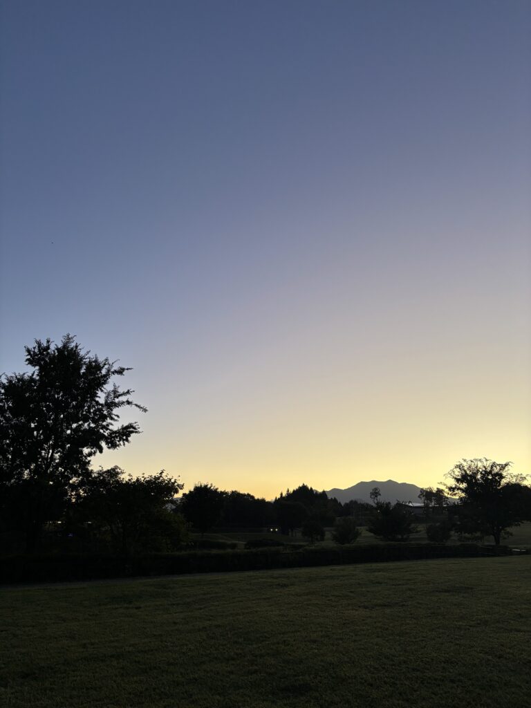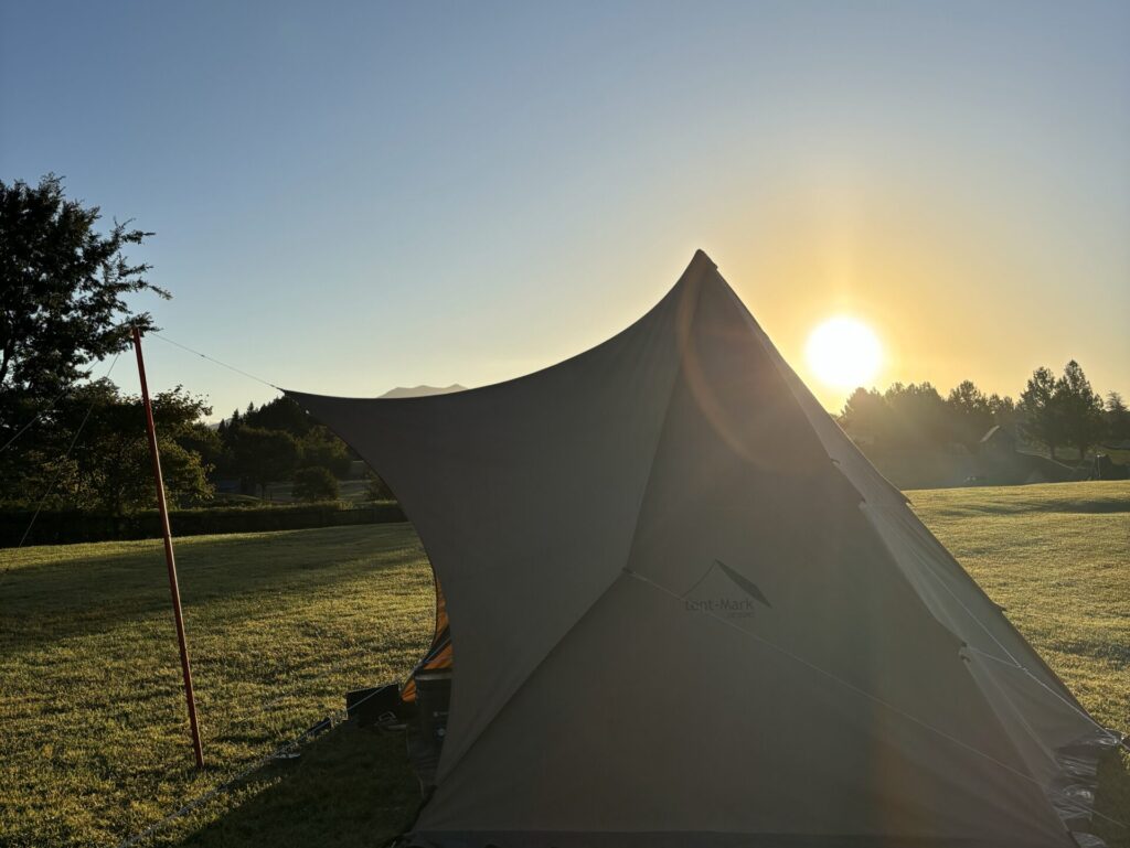 雲一つない晴天!楽しい時間はあっという間…。みんなが寝ている時間帯に起きて行動するのは得した気分。朝んぽしてコーヒー飲んだら撤収…長距離運転が待っています🚙